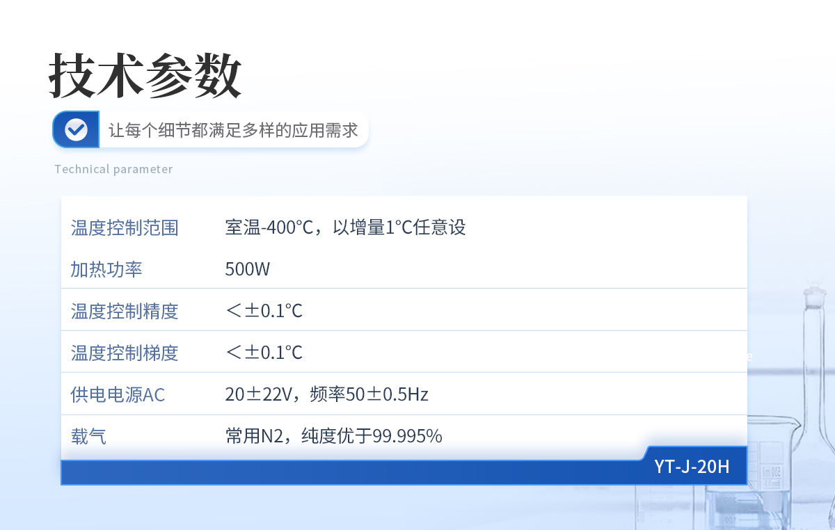 溫度控制范圍:室溫-400℃,以增量1℃任意設(shè) | 加熱功率:500W | 溫度控制精度:<±0.1℃ | 溫度控制梯度:<±0.1℃ | 供電電源AC:220±22V,頻率50±0.5Hz | 載氣:常用N2,純度優(yōu)于99.995% |