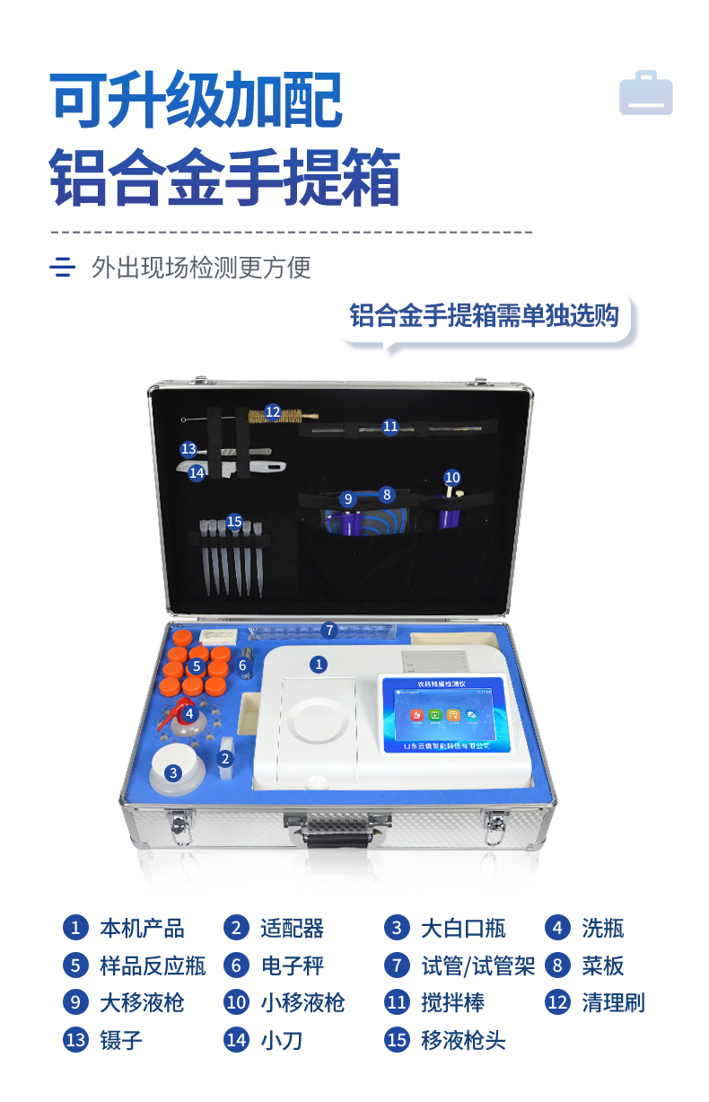 1)可加配語音報(bào)讀功能,人性化指導(dǎo)操作。 | 2)儀器可實(shí)現(xiàn)自身加熱功能。 | 3)可配置大容量鋰電池。 |