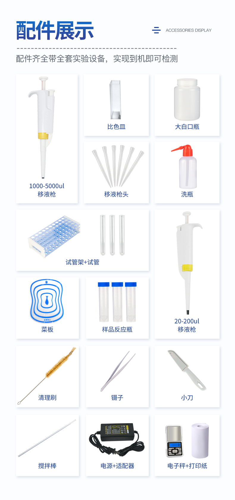 檢測標(biāo)準(zhǔn):依據(jù)國家標(biāo)準(zhǔn)方法(GB/T5009.199-2003)以及世界衛(wèi)生組織WHO、世界糧農(nóng)組織FAO殘留農(nóng)藥檢測標(biāo)準(zhǔn)、世界環(huán)境保護(hù)局EPA參照攝入量等要求來設(shè)計(jì)。采用酶抑制率比色法對(duì)水果、蔬菜等農(nóng)林產(chǎn)品中有機(jī)磷和氨基甲酸酯類農(nóng)藥含量進(jìn)行快速準(zhǔn)確的檢測,乙酰膽堿酯酶和丁酰膽堿酯酶試劑均可以使用,符合國家標(biāo)準(zhǔn)和農(nóng)業(yè)部標(biāo)準(zhǔn)的要求。