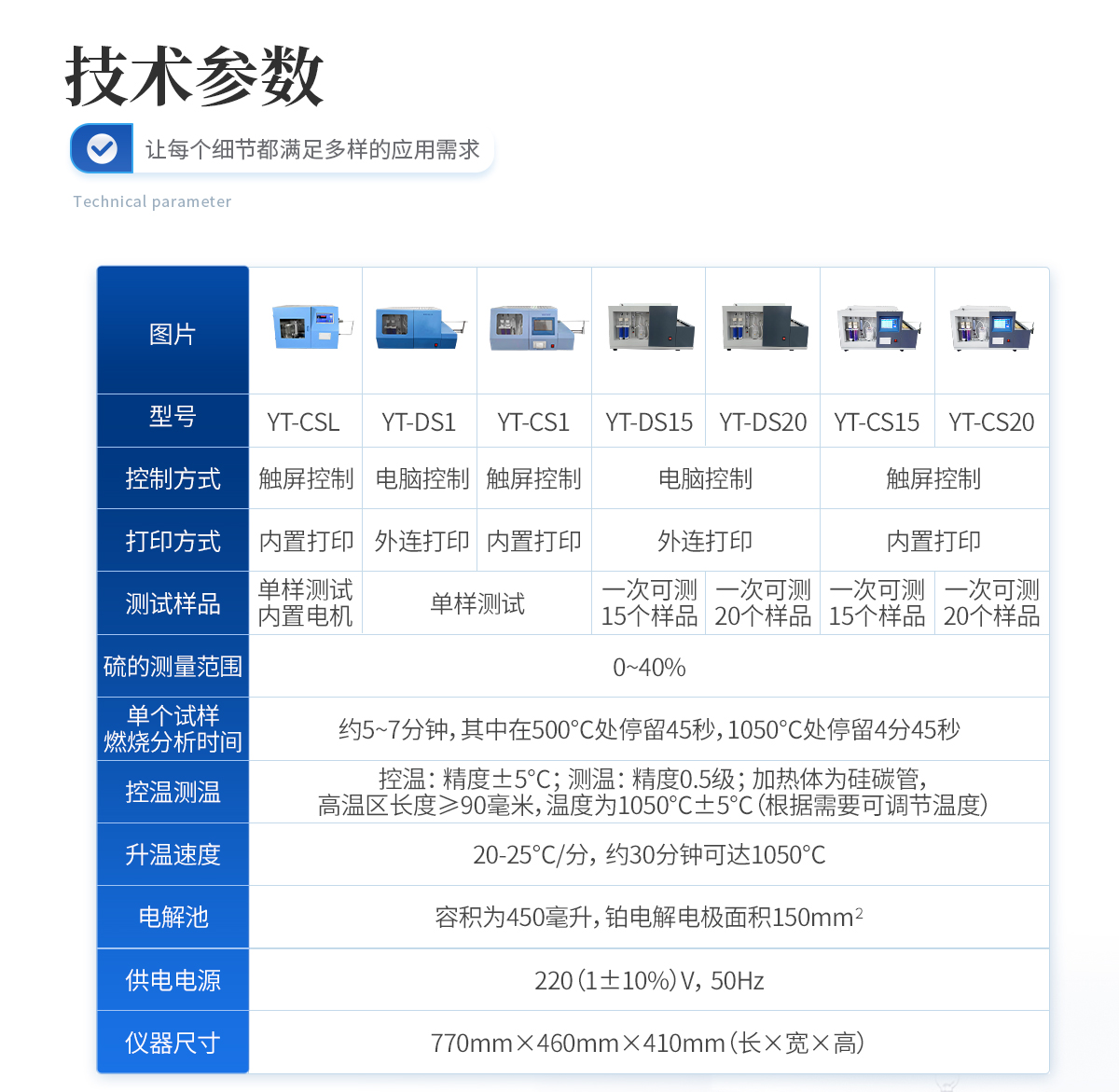 1.硫的測量范圍:0—40%. | 2、 單個(gè)試樣燃燒分析時(shí)間:約5--7分鐘,其中在500℃處停留45秒,1050℃處停留4分45秒。 | 3、控溫:精度±5℃。測溫:精度0.5級;加熱體為硅碳管,高溫區(qū)長度≥90毫米,溫度為1050℃±5℃(根據(jù)需要可調(diào)節(jié)溫度) | 4、 密度:如下表規(guī)定: St,% 重復(fù)性St,ad,% 再現(xiàn)型St,d,%<1 4="" 0.05="" 0.10="" 0.20="">4 0.20 0.30 | 5、升溫速度:20--25℃/分,約30分鐘可達(dá)1050℃。 | 6、電解池:容積為450毫升,鉑電解電極面積150mm2 。 | 7、供電電源:220(1±10%)V,50Hz. | 8、儀器尺寸(mm) 長×寬×高(770×460×410) |