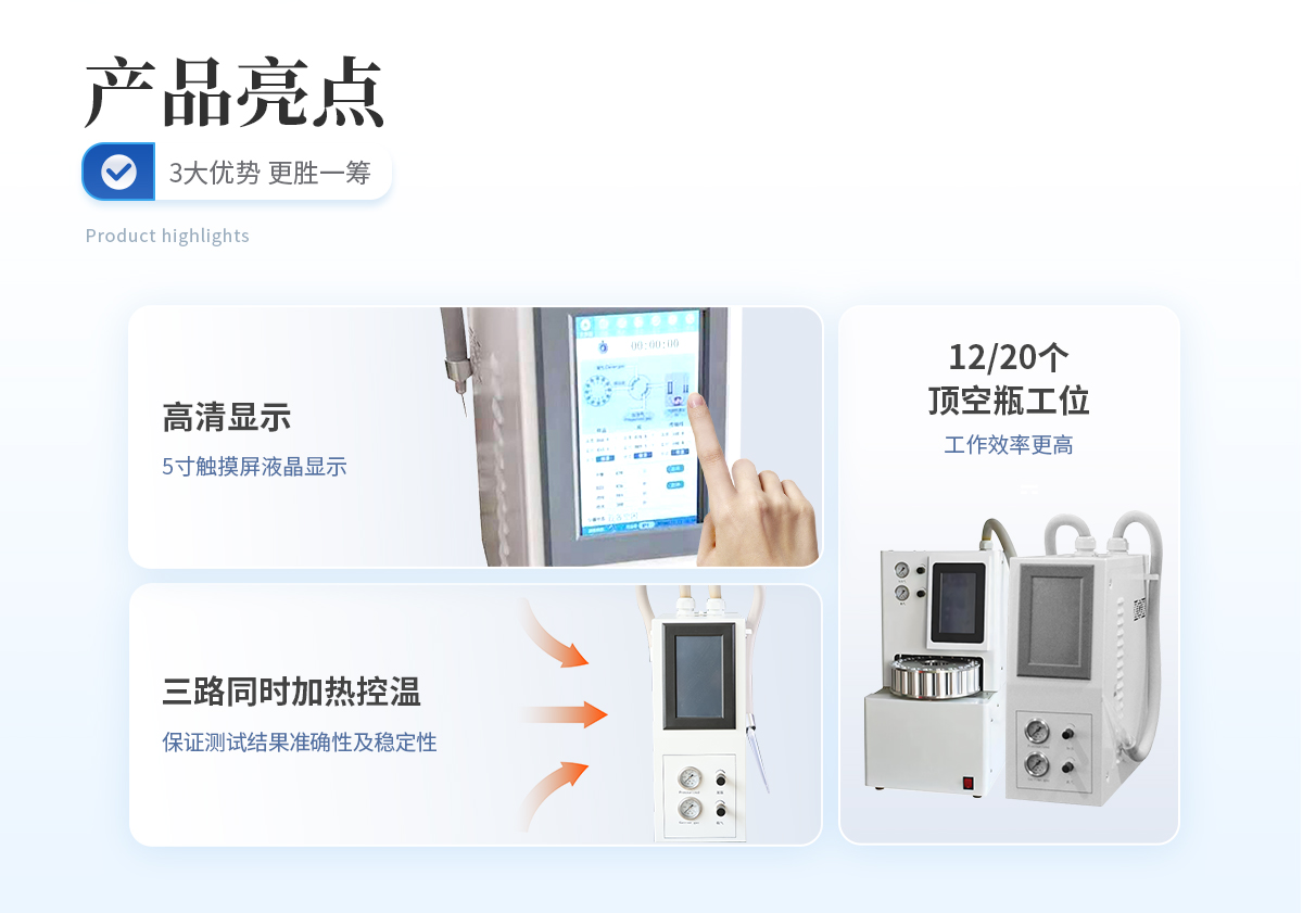 1.主要功能有: (1)液晶顯示:方法參數(shù)設(shè)置、實(shí)時(shí)工作狀態(tài)、運(yùn)行時(shí)間、年-月-日-時(shí)等; (2)頂空瓶、進(jìn)樣系統(tǒng)和取樣(進(jìn)樣)導(dǎo)管,三路同時(shí)加熱控溫; | 2.樣品區(qū)溫度控制范圍:室溫-260℃,以增加1℃任設(shè); | 3.樣品傳送管線溫度控制范圍:室溫-220℃,以增加1℃任設(shè) | 4.閥進(jìn)樣系統(tǒng)溫度控制范圍:室溫-220℃,以增加1℃任設(shè): | 5.進(jìn)樣加壓范圍:0-0.4Mpa (連續(xù)可調(diào)); | 6.頂空瓶工位:12個(gè)。 |