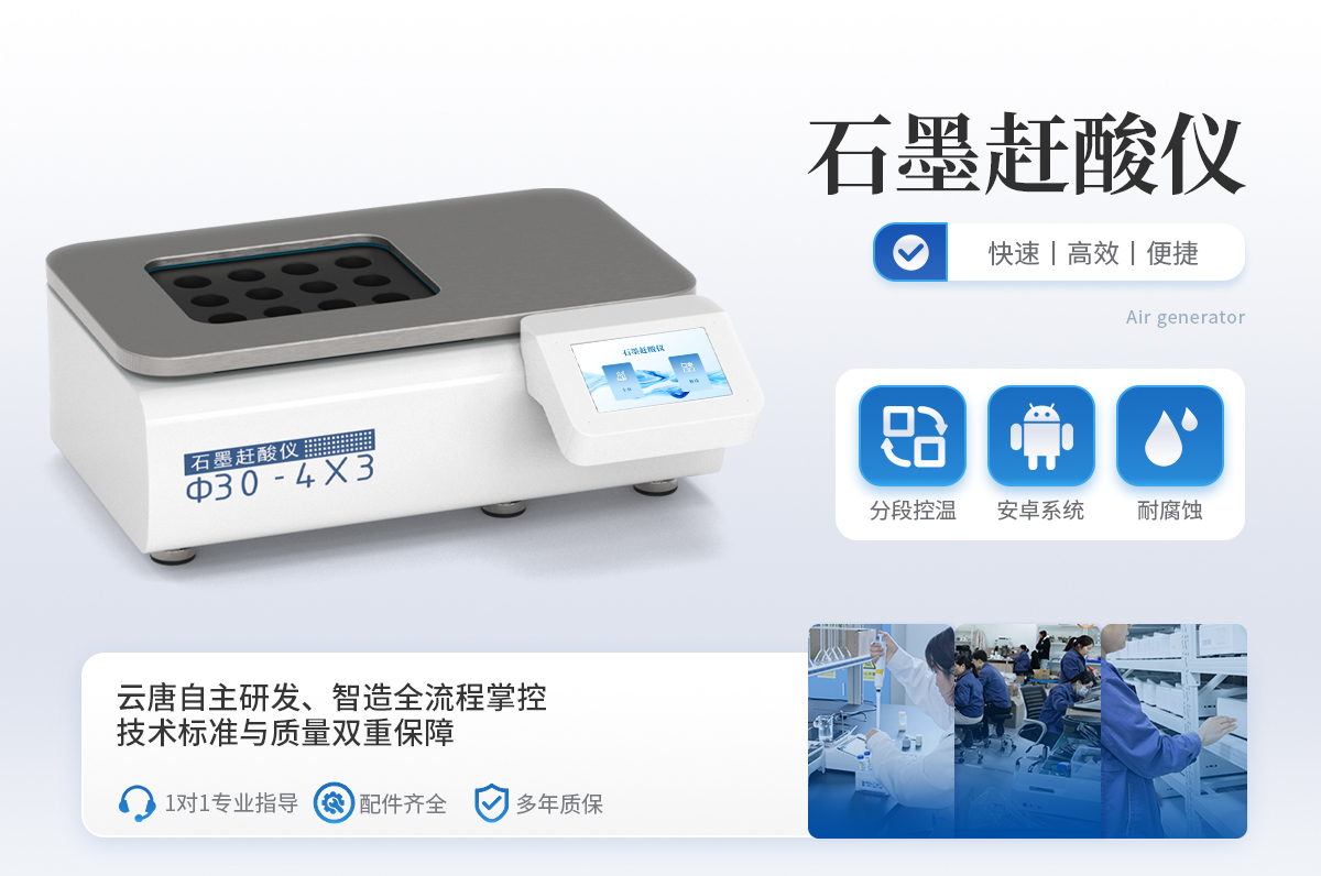 石墨趕酸儀,具有快速、**、便捷等優(yōu)點,適用于食品、藥品、質(zhì)檢、環(huán)保、疾控、化工、高校等行業(yè)樣品的處理。可用于微波消解的預處理和趕酸處理,是原子吸收、原子熒光、ICP-AES等分析儀器的理想配套產(chǎn)品,更適合與微波消解儀配套使用。